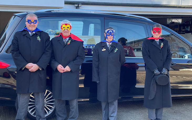 The funeral team led by Funeral Manager Caitlin Crispin-Maguire wore capes and masks with matching badges.